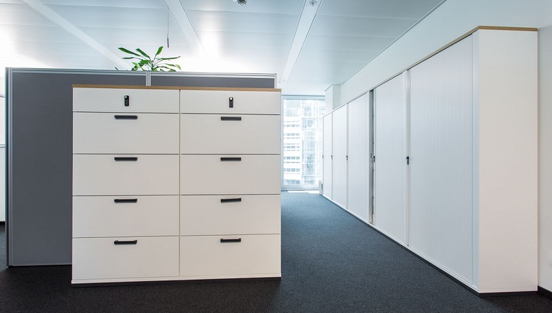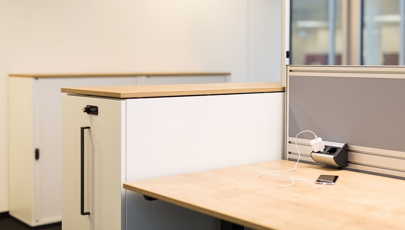 Für Arbeitsplatz, Stauraum und Zonierung bieten wir die beste Lösung zur optimalen Flächennutzung bei höchster Liefersicherheit. Gemeinsam mit dem Fachhandelshaus Gärtner Internationale Möbel statteten wir 880 Arbeitsplätze mit elektromotorischen HV-Tischen der Serie Jump aus. Persönlich zugewiesene Frontauszugcontainer mit integriertem Beleuchtungskonzept und Stauraum auf 20 Etagen ergänzen die Möblierung. Etwa 7300 Möbelstücke wurden mit 45 Sattelzügen ausgeliefert und montiert.