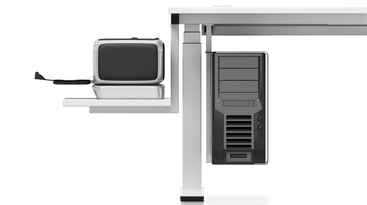 Gerätetablar außen und PC-Halter innen an Traverse montiert
