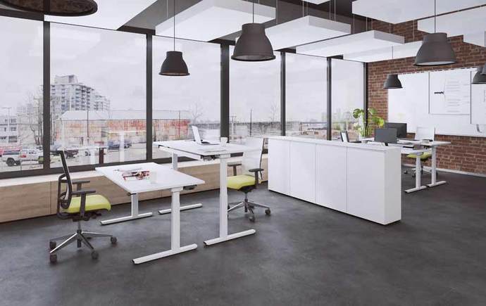 Flexibility and efficiency often arise from ideas which are compellingly pure and simple. The electrically height adjustable desk OKA EasyUp offers persuasive technology. Partially assembled delivery and tool-free mounting saves transport capacity and allows efficient rearrangement and storage at any time. We also offer EasyUp completely assembled. The rectangular desk EasyUp is available in the dimensions 160/180 cm x 80/90 cm. The partially assembled version is assembled in one simple step using the slide-in method.